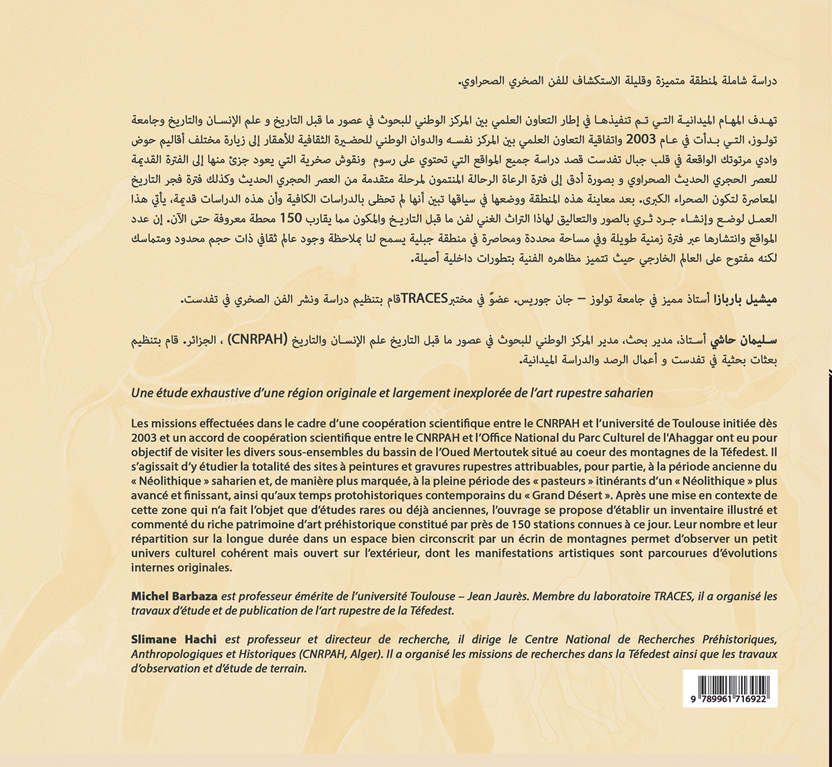 Vient de paraître dans la collection mémoire, nouvelle série : "Préhistoire de l’Ahaggar, L’art rupestre de la Téfedest" , disponible dans la librairie du CNRPAH au 03 rue franklin Roosevelt Alger, ou à la commande.