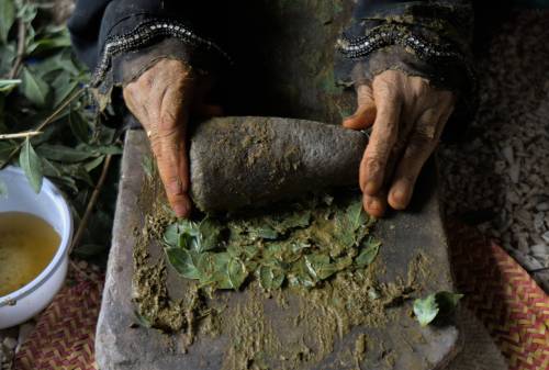 Les femmes préparent aussi le henné hors cérémonies, dans un but médicinal appliqué aux cheveux blancs ou aux membres inférieurs.