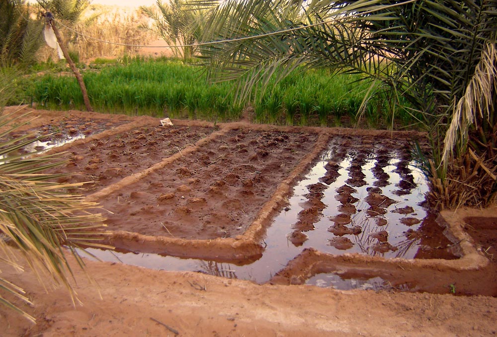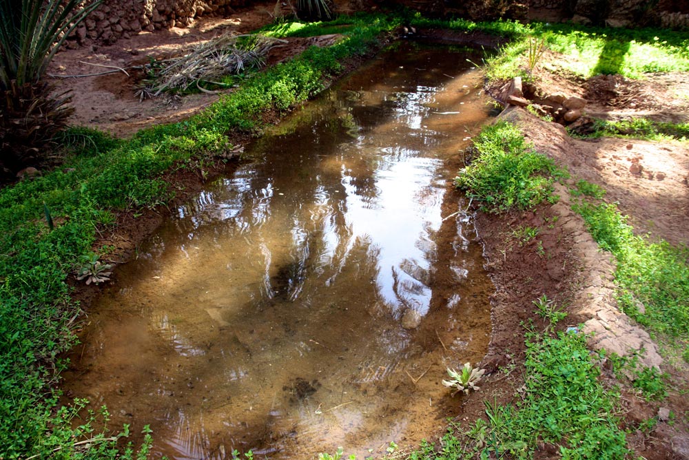 3- Puis les eaux sont conduites dans des rigoles appelées "Séguias" qui les emmènent vers les jardins.