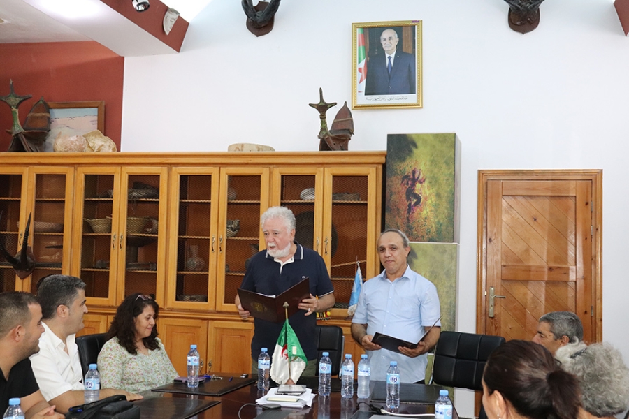 مراسيم توقيع على الإتفاقية العلمية بين المركز الوطني للبحوث في عصور ماقبل التاريخ، علم الإنسان و التاريخ و مركز البحث في اللغة و الثقافة الأمازيغية Cérémonie de signature d'une convention scientifique de collaboration entre le CNRPAH et CRLCA