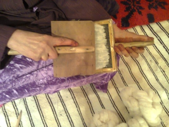 On fabrique des burnous, des qechabiya, des hayek, des zarbiya. Les outils utilisés, presque tous les mêmes, n’ont que le nom qui change, tantôt en arabe, tantôt en amazighe. Encore que, souvent les appellations sont du amazigh arabisé, et même francisé comme le cardage (aqardache).