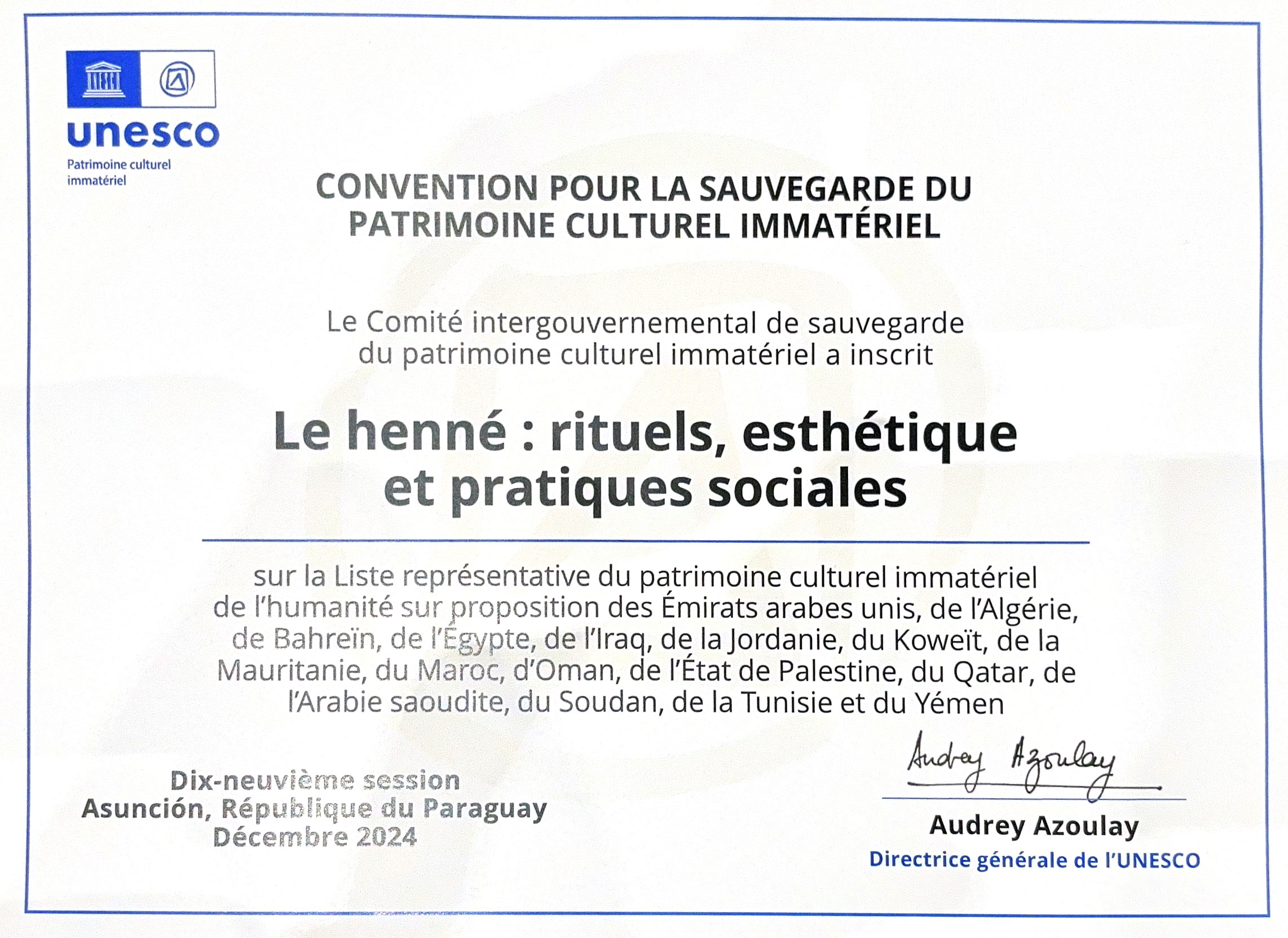 بية والعلوم والثقافة (اليونسكو) مباشرة بعد مصادقتها على ادراج لملف الجزائر المتعلق بـ"الزي النسوي الاحتفالي للشرق الجزائري الكبير في القائمة التمثيلية للتراث الثقافي غير المادي للبشرية،