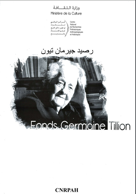 La bibliothèque du Centre National de Recherches Préhistoriques Anthropologiques et Historiques (CNRPAH) a le plaisir de présenter le catalogue du « fonds Germaine Tillion ». Il comprend 346 ouvrages, 32 articles et 33 périodiques. Ce lot documentaire ainsi que 150 photographies prises par Germaine Tillion dans l’Aurès dans les années 30, ont fait l’objet d’un don à l’Algérie effectué par Madame Emilie Sabeau-Jouannet, nièce de Germaine Tillion, à l’occasion du cinquantenaire de l’indépendance de l’Algérie.
