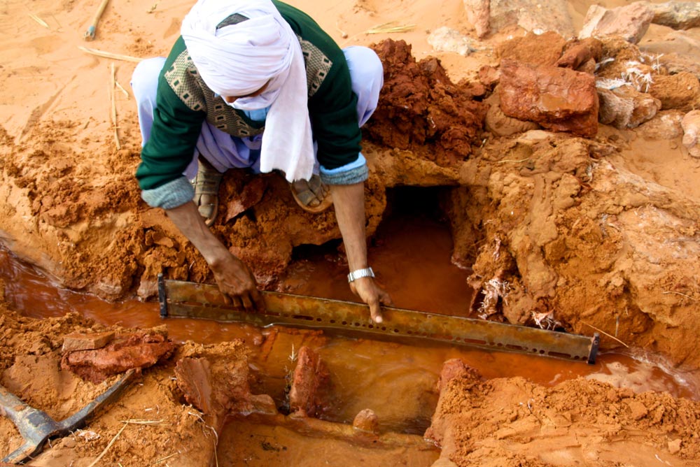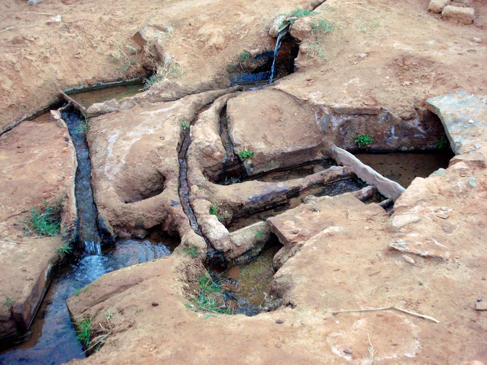 2- Une fois arrivée à l'air libre, l'eau est mesurée et c'est le domaine d'intervention des Kiyalin el-Ma (mesureurs d'eau). Chaque propriétaire reçoit sa part d'eau en fonction du travail qui a été consenti pour le creusement et/ou l'entretien de cette foggara.