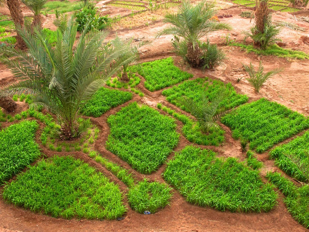 3- Puis les eaux sont conduites dans des rigoles appelées "Séguias" qui les emmènent vers les jardins.