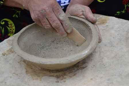 La poterie traditionnelle de la région de Tissemsilt est un artisanat rural, féminin par excellence. Elle se caractérise par l’utilisation de matériaux naturels et par des techniques de fabrication simples et ancestrales. Les pièces sont façonnées à l’aide de colombins d’argile empilés, disposés en spirale, puis cuites en plein air, en meule, ou dans un four traditionnel à pain (koucha).